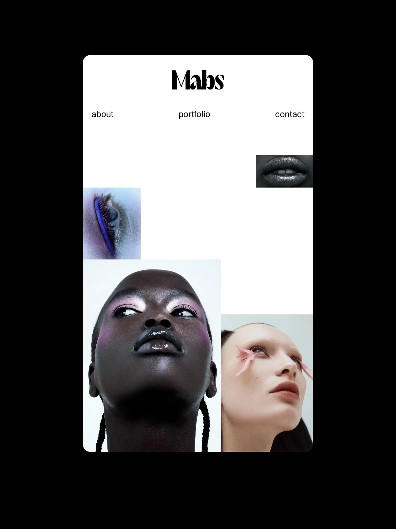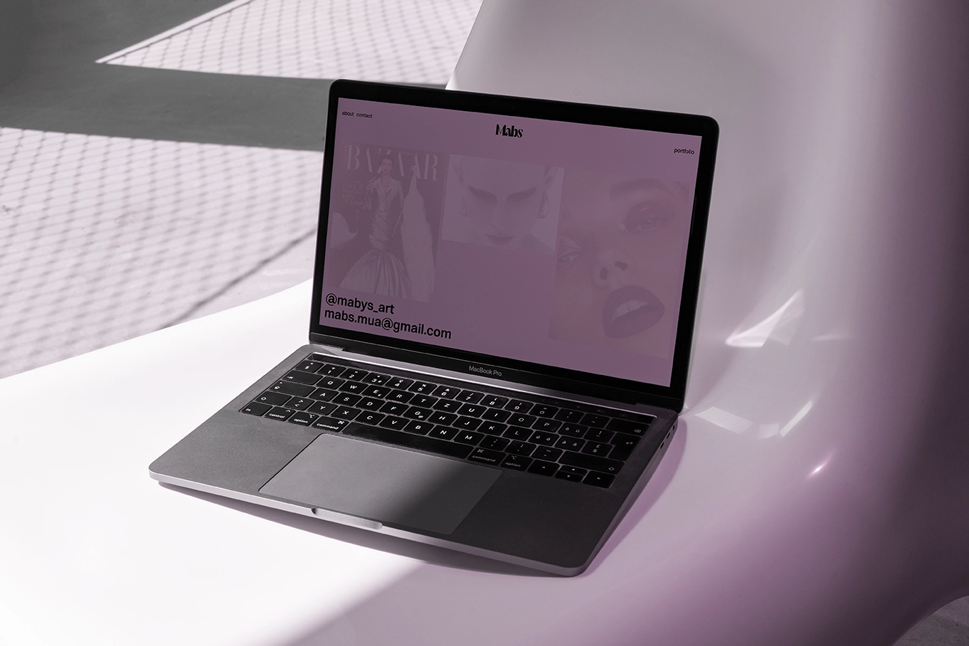 A refined identity and a streamlined portfolio site for MABS, a makeup artist whose work spans editorial, fashion and beauty. The identity is pared back and confident; a lilac accent was chosen to complement her portfolio and reflect her bold, assured style.